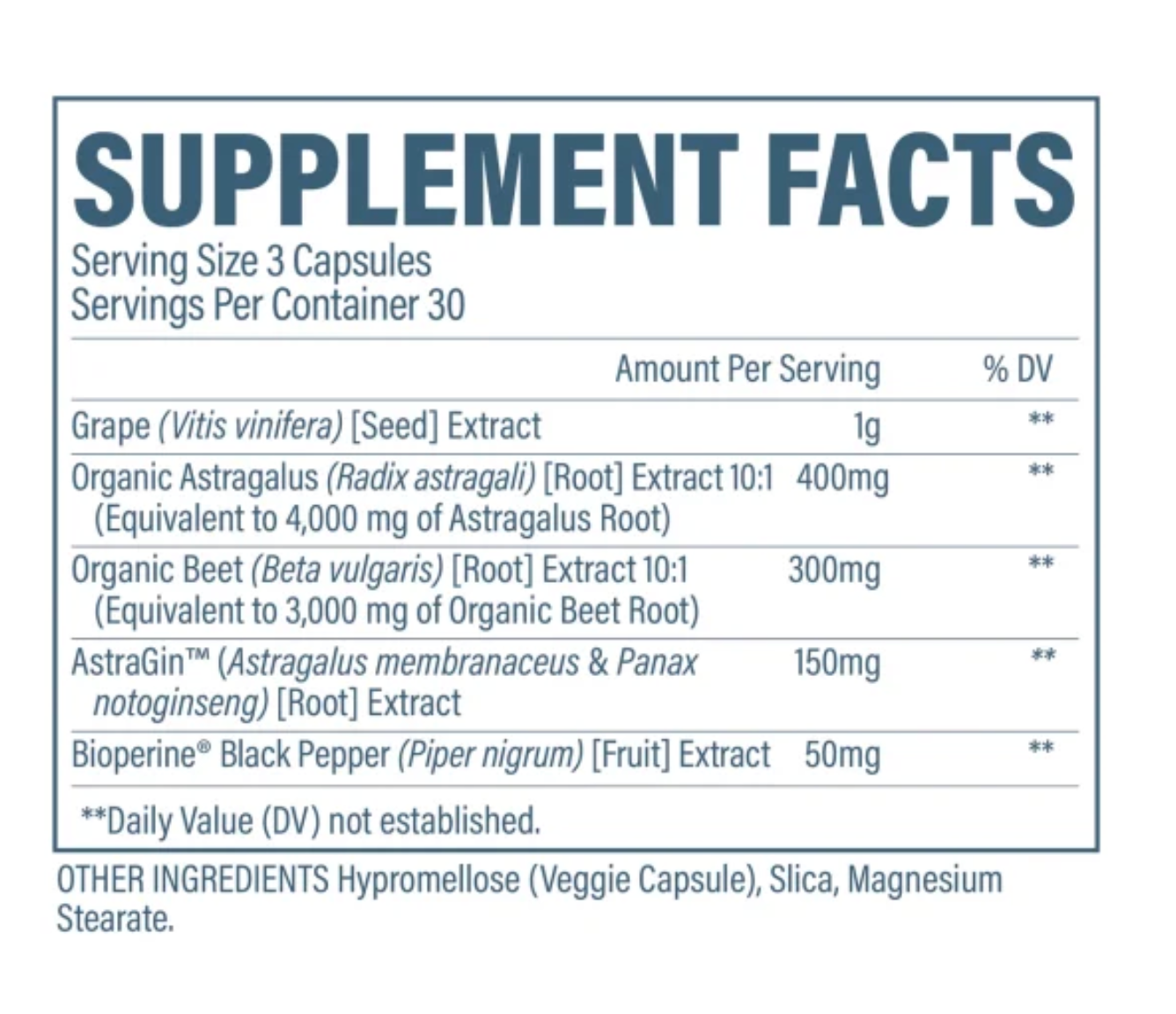 Suggested Use: Take four (4) capsules up to three times daily with 8-12 ounces of water.